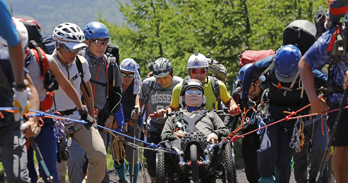 一回で頂上まで行く必要はない。とりあえず1合分上れば(5合目から6合目、6合目から7合目・・)かならず宿はあるのだから、最初から何日間かに分けて高度の違う別の宿に予約をしておいて、2、3日かけて上ることもできると思う。宿泊施設のない山なら仕方がないだろうけど、とにかく、富士山は泊まるところはいっぱいある。宿から宿までは1合分、登り1時間程度が標準と考えられるから、ミニマム1時間坂道を登る力があれば挑戦できるんじゃないかと思う。