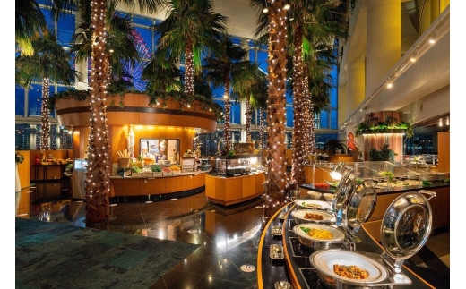 ブッフェ会場からは、みなとみらいの夜景が一望でき、ラッキーなことに、どこかの花火大会まで鑑賞できました
