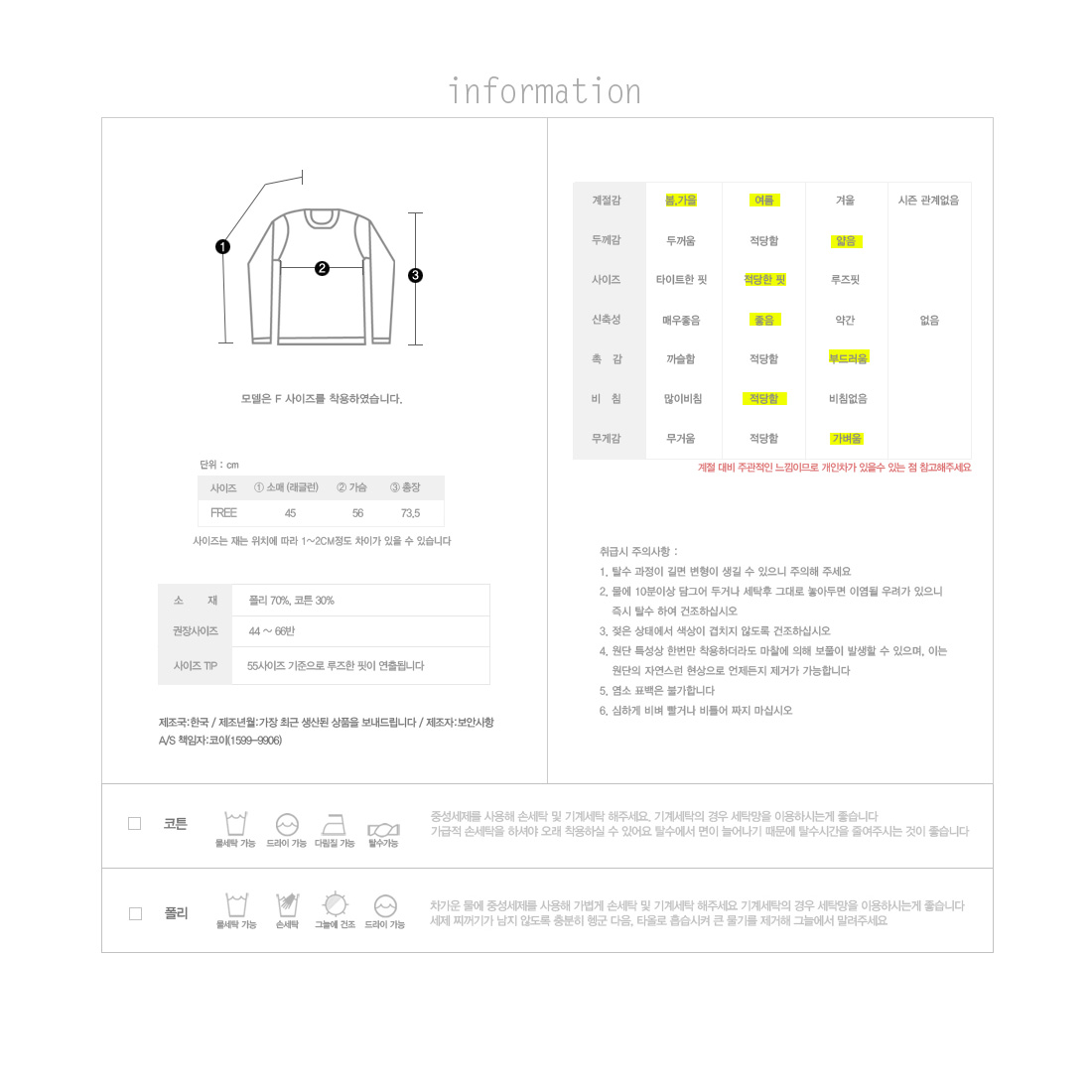袖口にかけてスリムになるのがきれい♪ 素材 ポリエステル70%、コットン30% 洗濯方法 コットン-水洗い/ドライクリーニング/アイロン掛け可能/脱水可能、ポリエステル-水洗い/手洗い/陰干し/ドライクリーニング モデル着用 F 詳細情報 シーズン:春+秋+夏/厚み:薄い/シルエット:ジャスト/伸縮性:良し/手触り:なめらか/透け感:普通/重み:軽い 製造情報 製造国:韓国/製造者:保安事項/製造年月:最も最近生産された商品をお送りしております。 備考 * 測り方によって、1~2cm程の誤差が生じる可能性があります。