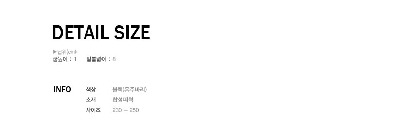 * モニターの環境によって実物と色が違って見える場合があります。 詳細サイズ サイズ ヒール高 甲幅 230-250 1 8 単位: cm
