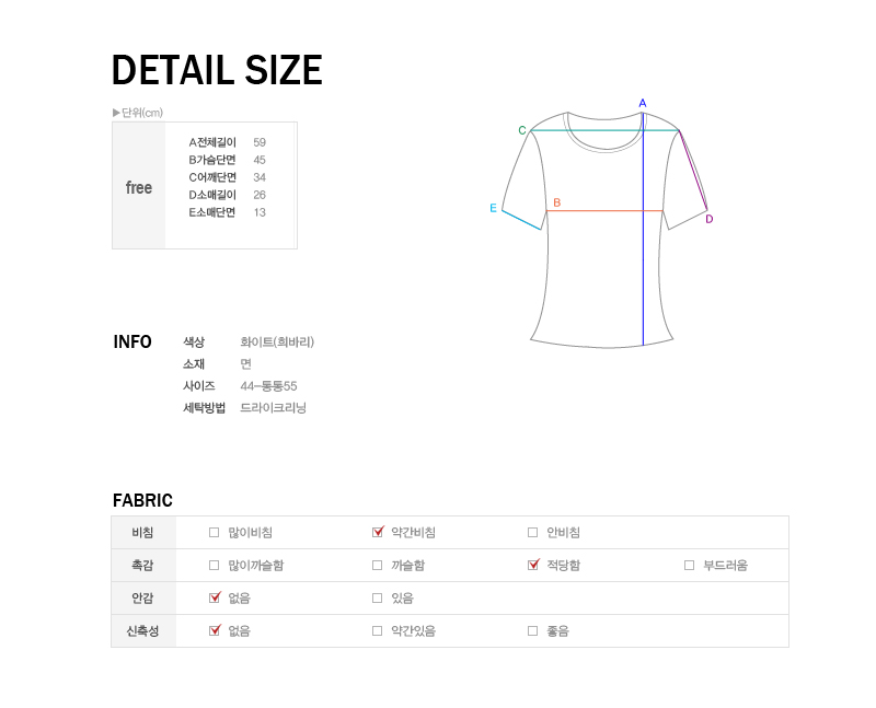 * モニターの環境によって実物と色が違って見える場合があります。 詳細サイズ サイズ 全長 胸幅 肩幅 袖丈 袖幅 Free 59 45 34 26 13 単位: cm