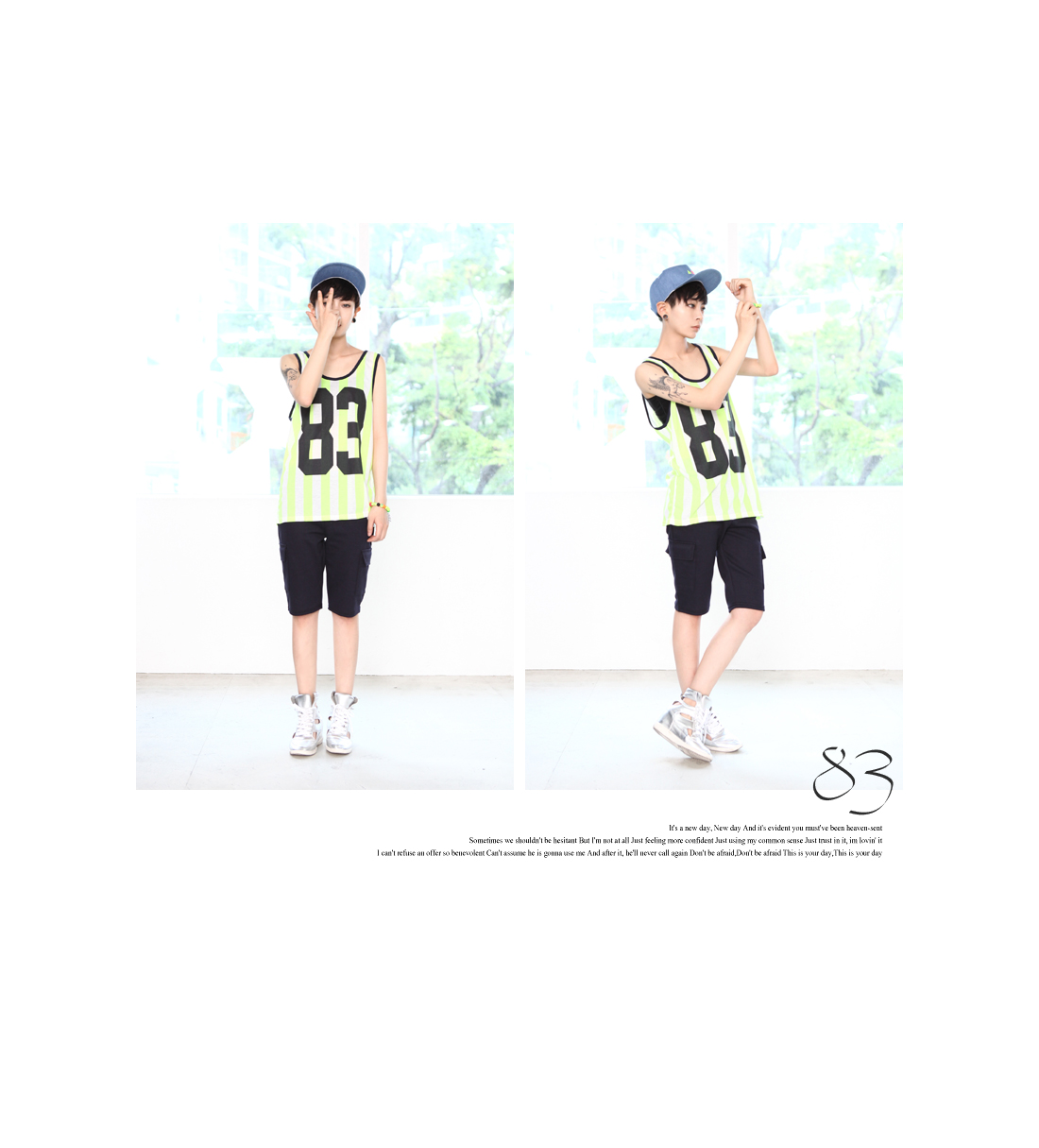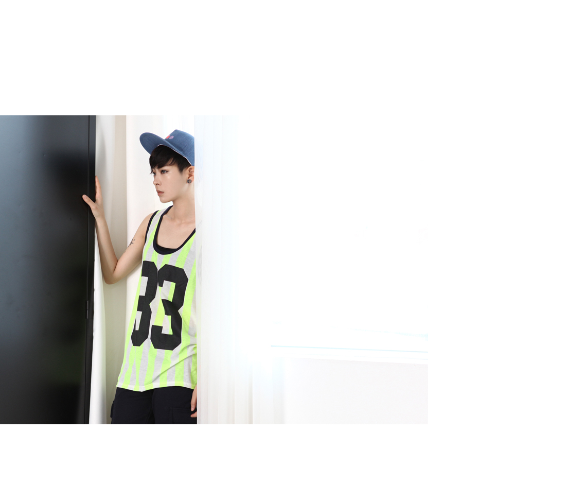 ピッチの広いストライプ柄や大きな数字プリント、大きく開いたネックと脇がスポーティ感満載なトップスとシンプルなカーゴパンツがセットが街っぽくて今の気分☆