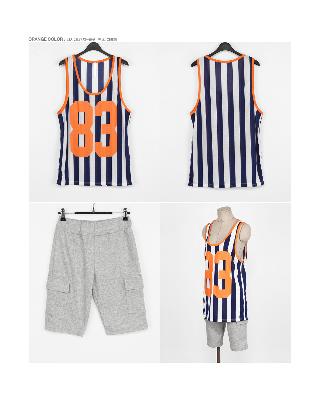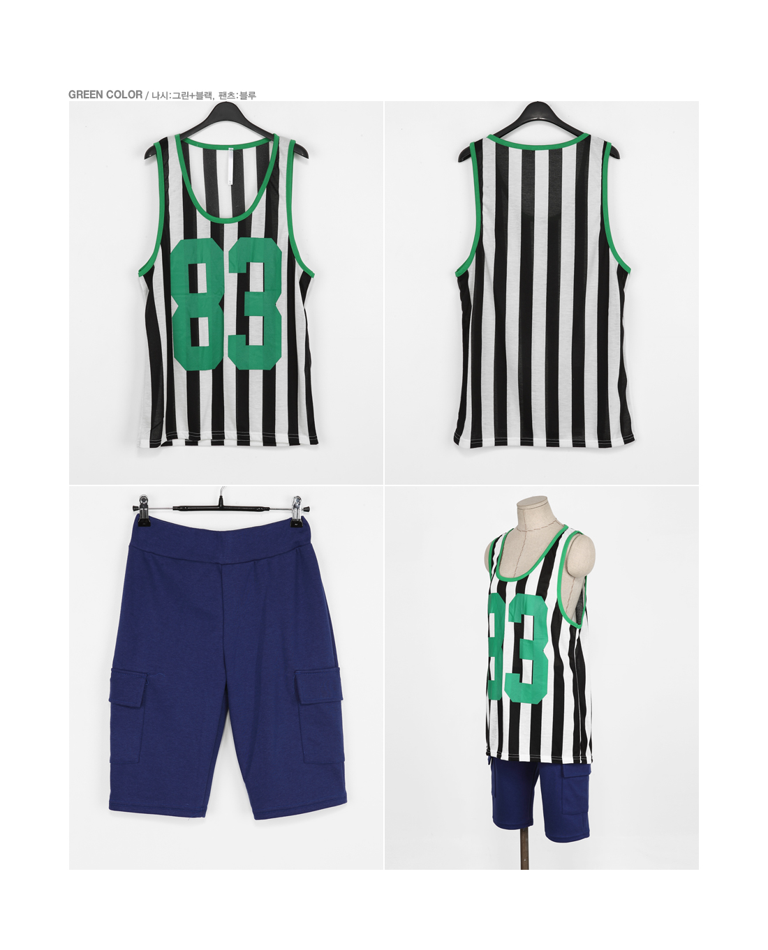 商品情報 商品説明 メンズライクなストライプノースリーブTシャツxハーフパンツセットです。