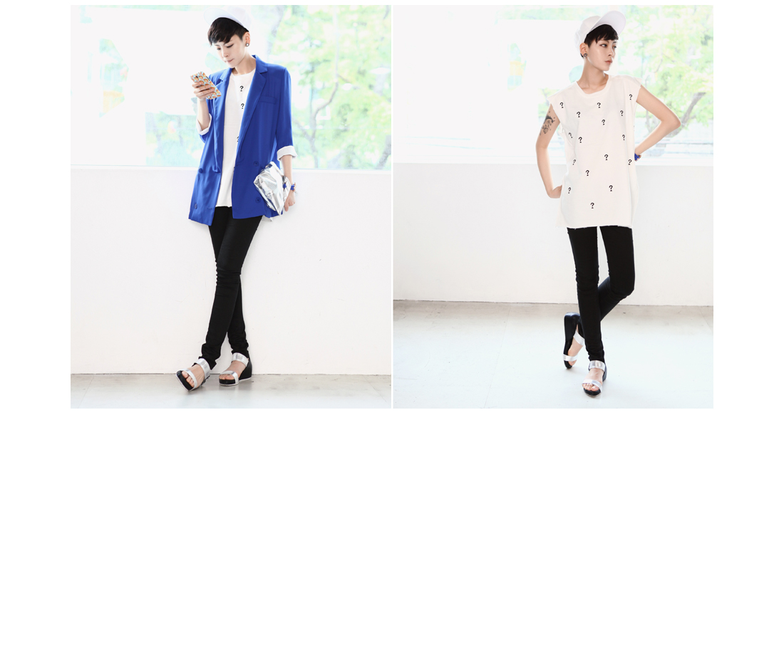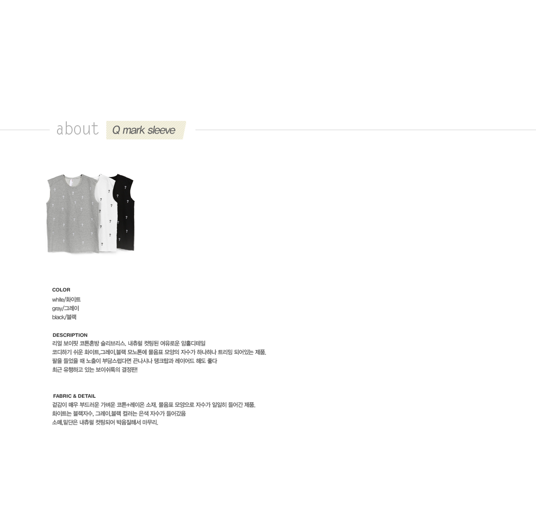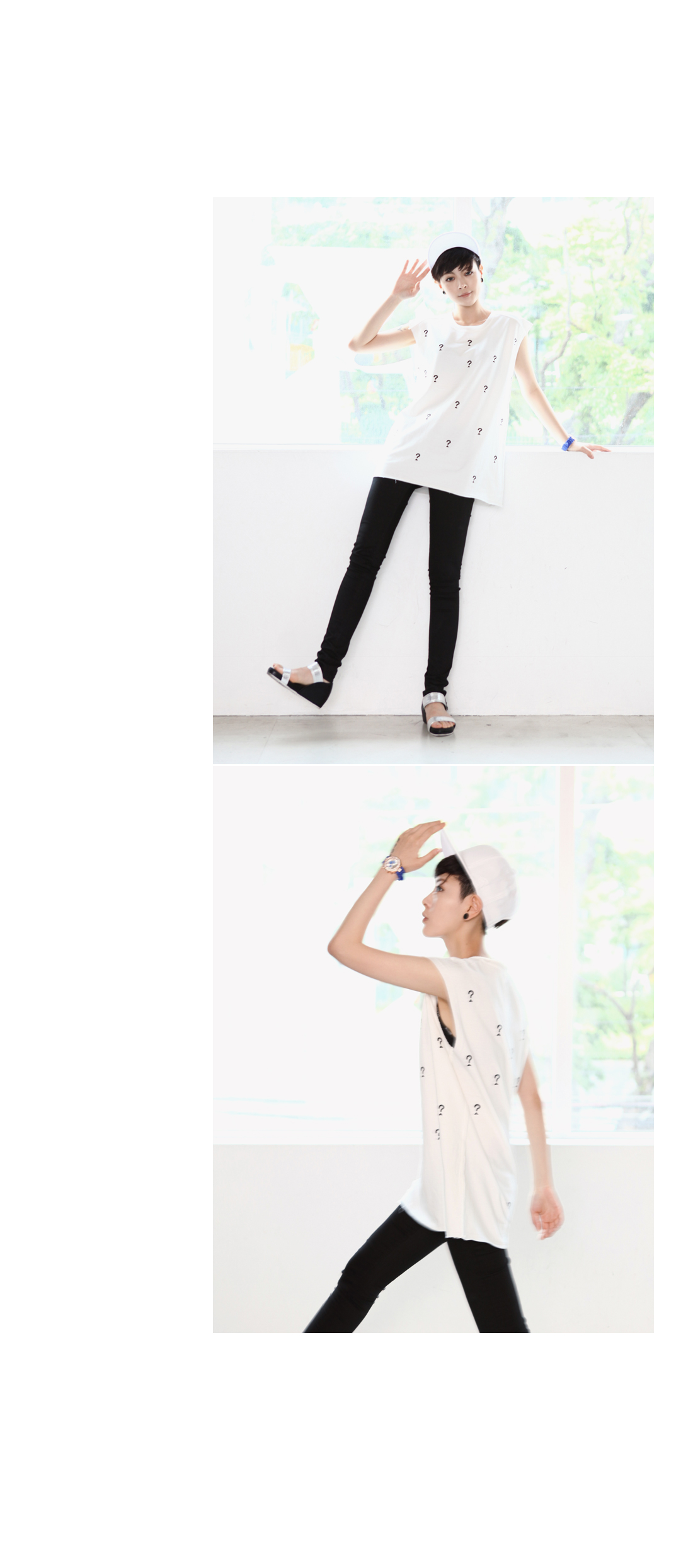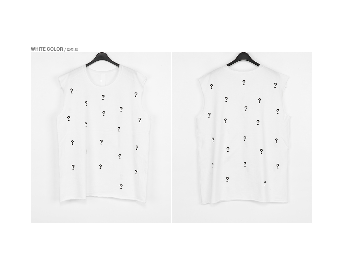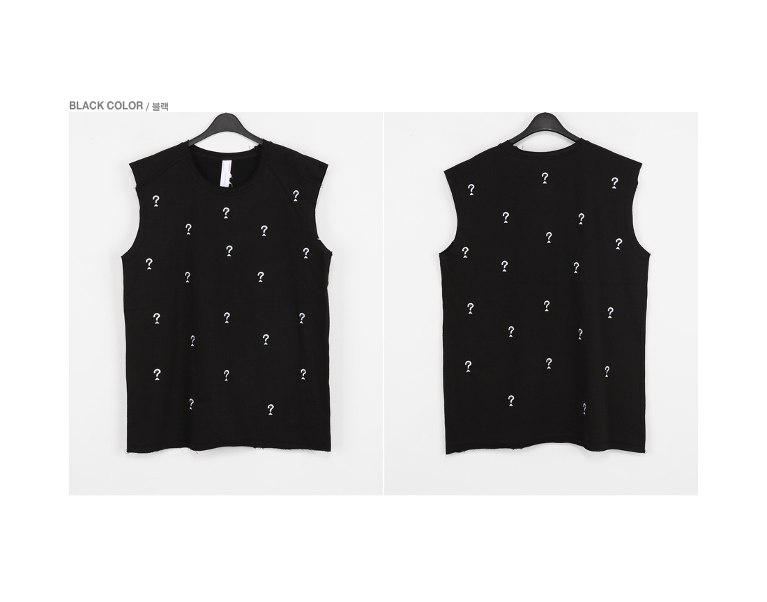 商品情報 商品説明 シンプルなクェスチョンマーク柄の刺繍がスタイリッシュなノースリーブTシャツです。