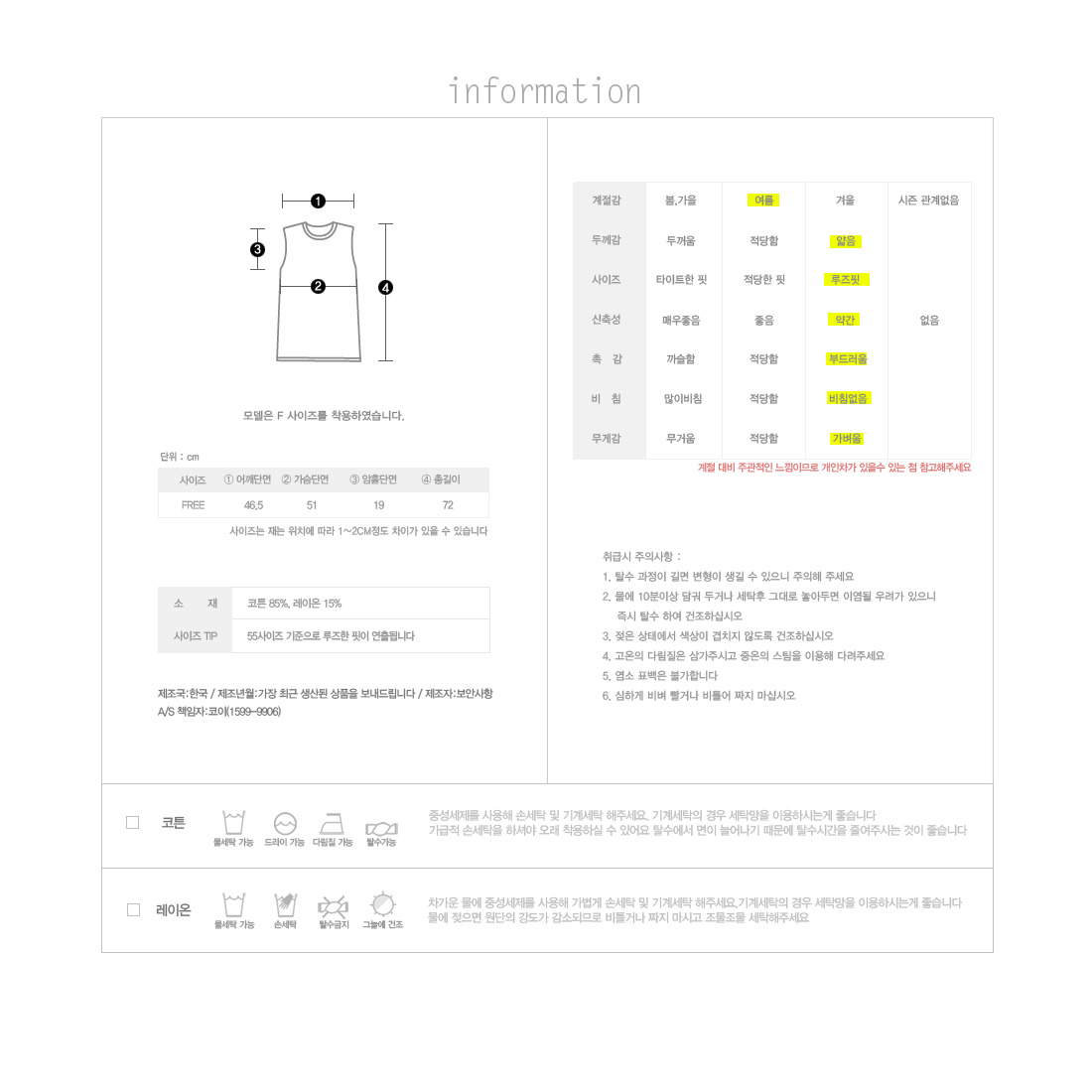 コットンxレーヨン素材が非常になめらかで軽いです♪ 素材 コットン85%、レーヨン15% 洗濯方法 コットン-水洗い/ドライクリーニング/アイロン掛け可能/脱水可能、レーヨン-水洗い/手洗い/脱水禁止/陰干し モデル着用 F 詳細情報 シーズン:夏/厚み:薄い/シルエット:ルーズ/伸縮性:若干/手触り:なめらか/透け感:無し/重み:軽い 製造情報 製造国:韓国/製造者:保安事項/製造年月:最も最近生産された商品をお送りしております。 備考 * 測り方によって、1~2cm程の誤差が生じる可能性があります。