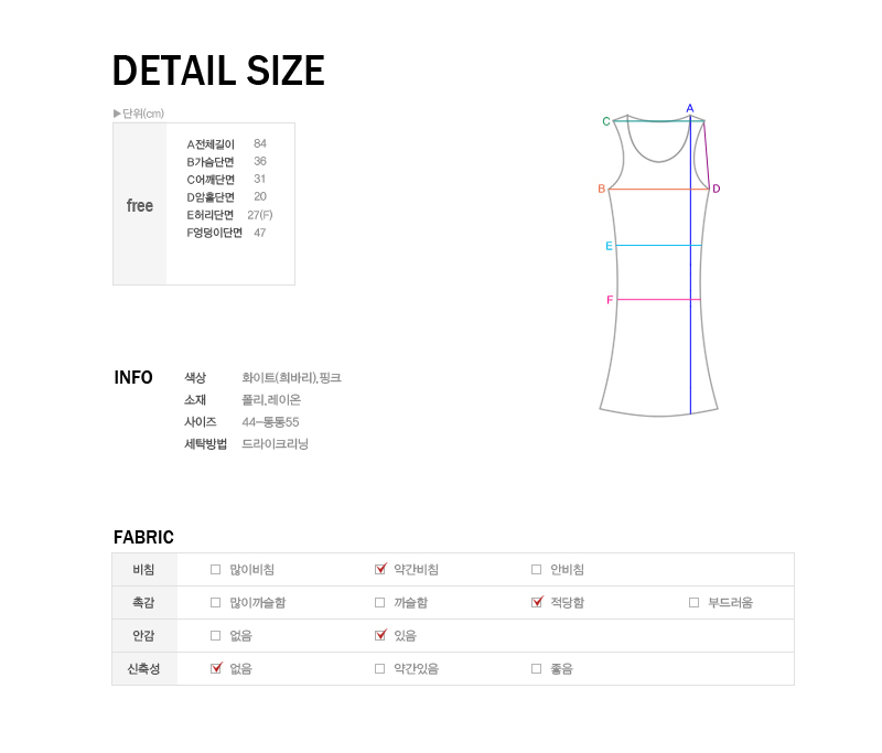 全体に裏地が付いていますが、トップスは若干透け感があります。 モデル着用情報ホワイト素材ポリエステル、レーヨン詳細情報透け感-若干/触感-普通/裏地-あり/伸縮性-無し洗濯方法ドライクリーニング製造情報製造者 : 営業機密 記載不可/製造国 : 韓国 or 中国/製造年日:2013.05備考* 測り方によって、1~2cm程の誤差が生じる可能性があります。