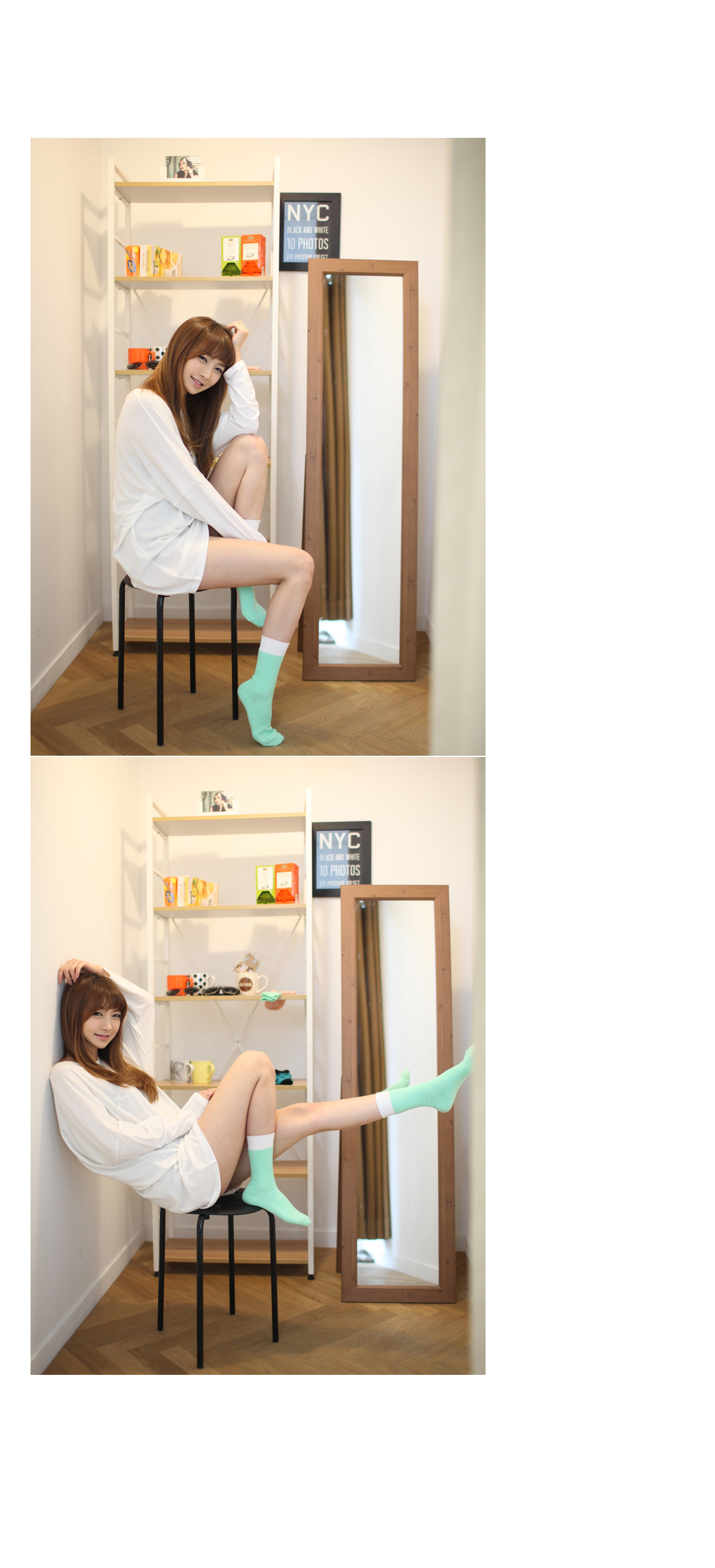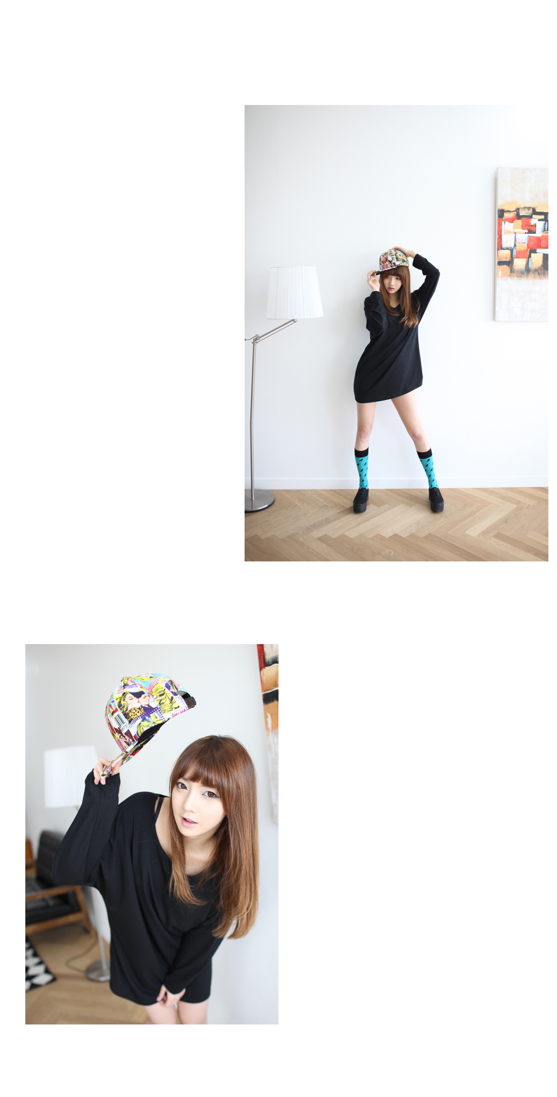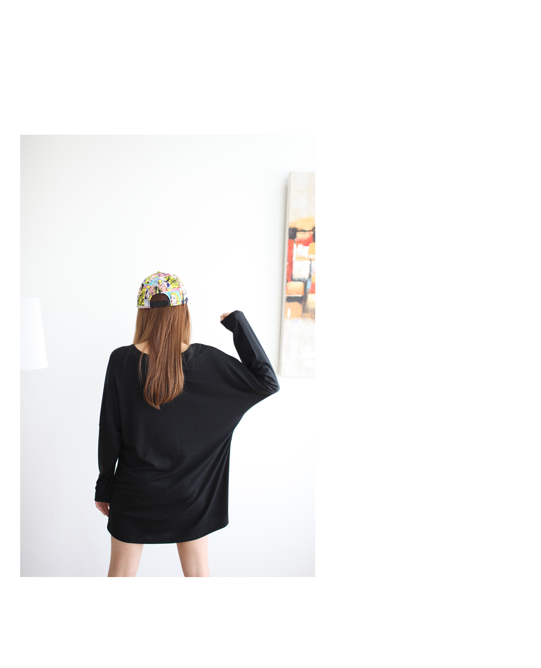 太もも半分くらいの丈は、ワンピースとしても使えます。