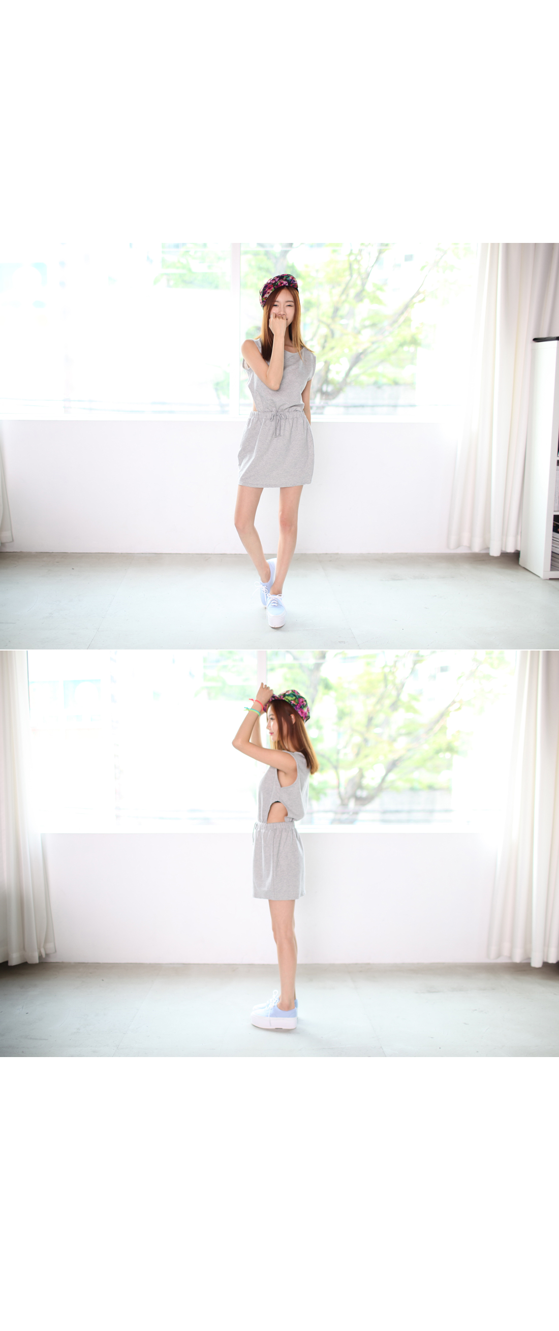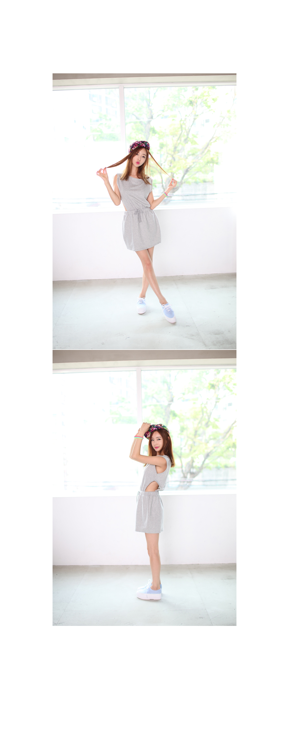スウェット素材でスポーティな印象をプラスしたウエストカットアウトワンピースです。