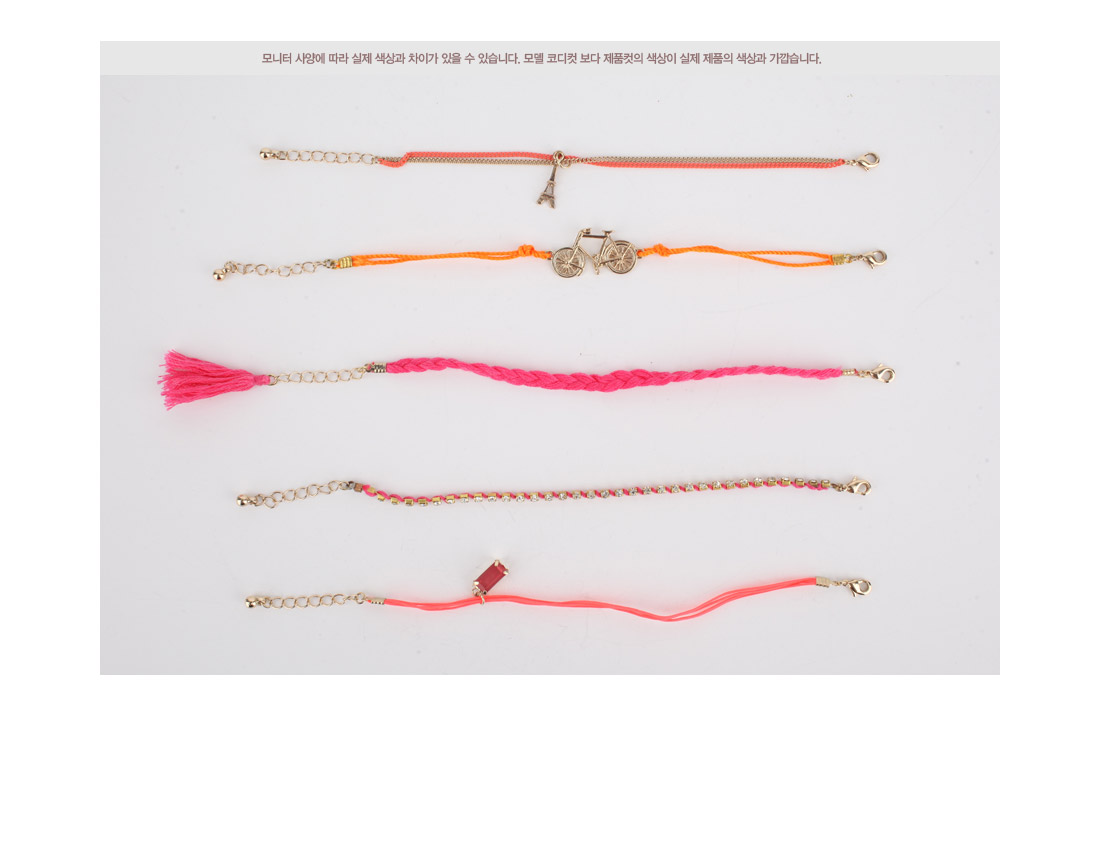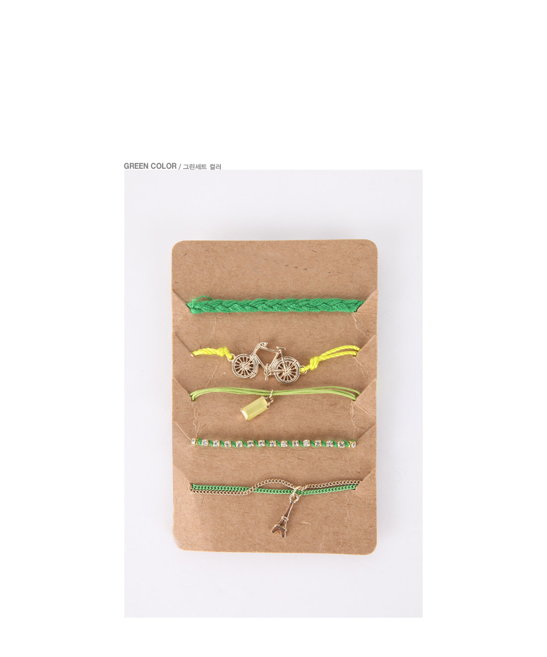 エッフェル塔ペンダントブレスレットの5点セットをご用意致しました。素材ナイロン、アクリル、ブラス製造情報製造国:韓国/製造者:保安事項/製造年月:最も最近生産された商品をお送りしております。備考* 測り方によって、1~2cm程の誤差が生じる可能性があります。