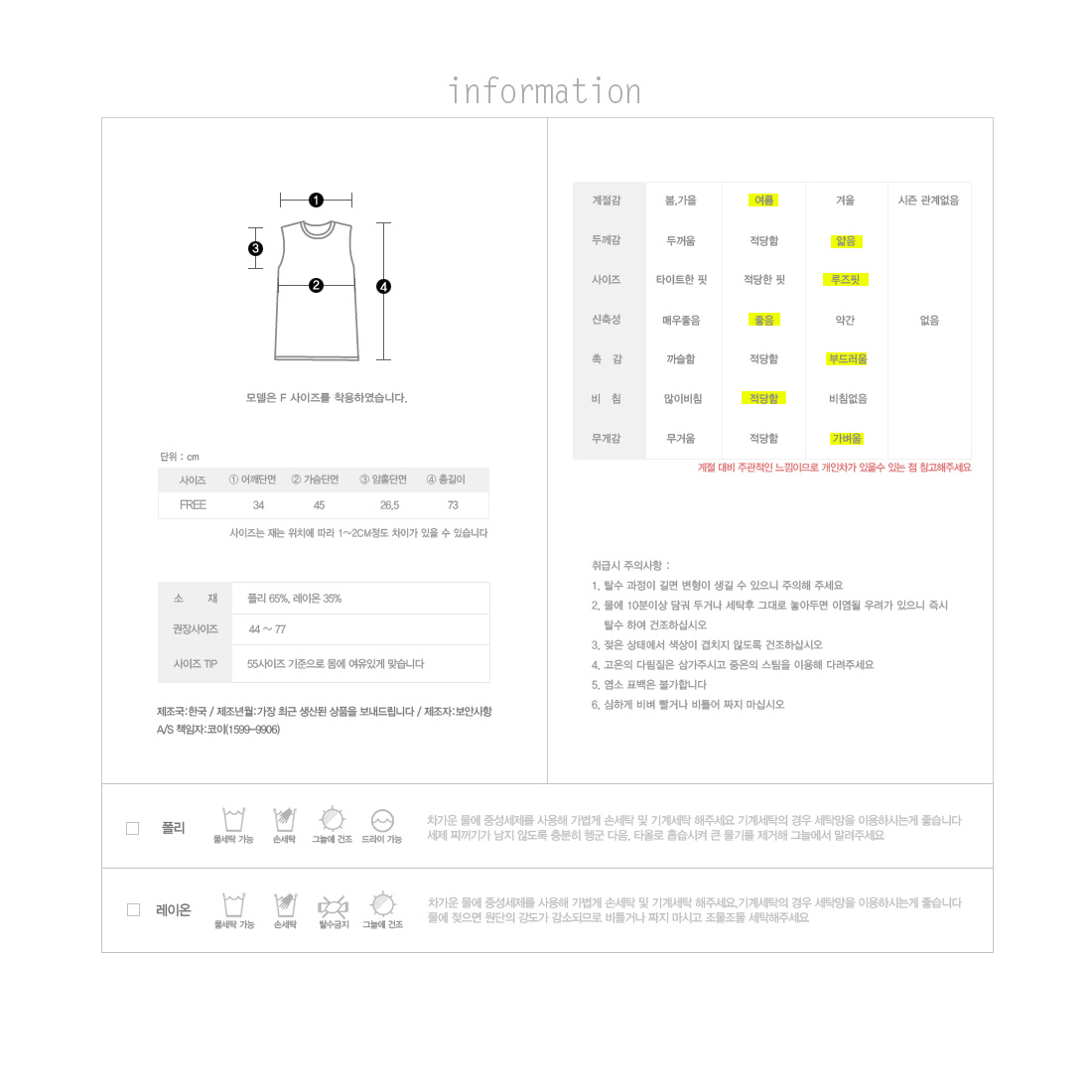 薄くてなめらかな手触りのレーヨンxポリエステル生地は真夏にも快適です! 素材ポリエステル65%、レーヨン35%洗濯方法ポリエステル-水洗い/手洗い/陰干し/ドライクリーニング、レーヨン-水洗い/手洗い/脱水禁止/陰干しモデル着用F詳細情報シーズン:夏/厚み:薄い/シルエット:ルーズ/伸縮性:良し/手触り:なめらか/透け感:若干/重み:軽い製造情報製造国:韓国/製造者:保安事項/製造年月:最も最近生産された商品をお送りしております。備考* 測り方によって、1~2cm程の誤差が生じる可能性があります。