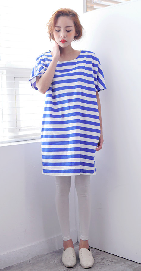 ブルーストライプゆったりワンピース