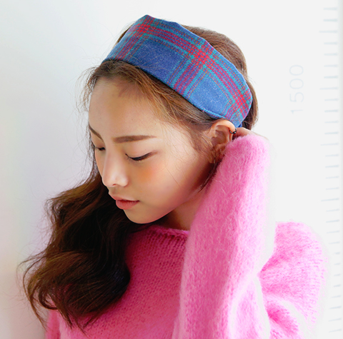 チェック柄ワイドヘアバンド
