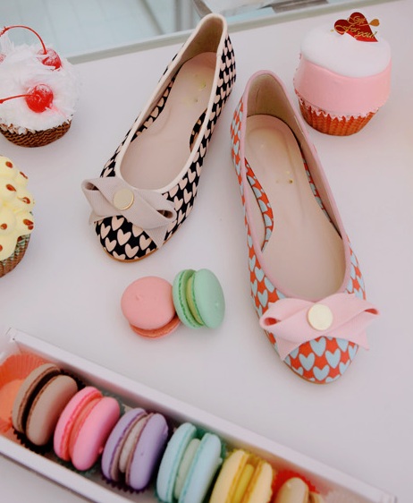 リボン付きハート柄ぺたんこ靴ポップなハート柄ぺたんこ靴。