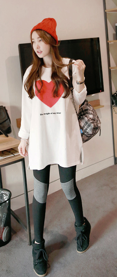 ハートプリントドロップショルダーロングTシャツMiamasvin(ミアマスビン)