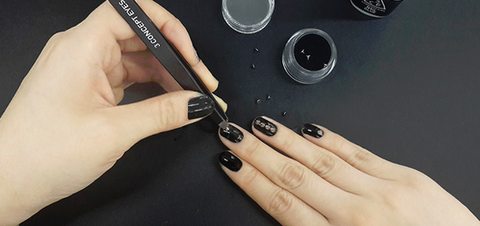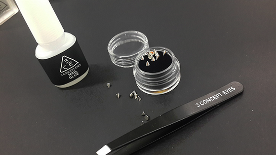 ネイルグルーをスタッズに塗り素早くスタッズをのせます。
