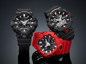 G-SHOCKのフェイスアイコンでありタフネスを象徴するフロントボタンを6時側に配置。Newベーシックと呼ぶにふさわしい、先進性とエッジを利かせたダイナミックなスタイリングによる仕上げを施しました。独自の樹脂成形技術による立体的な時分針には、金属を削り出したような力強く、厚みのあるボールドハンドを採用。視認性を向上しながらタフネスデザインにふさわしい、新しい造形に仕上げました。またダイアルリングやインデックスを立体的に表現し、ボールドハンドとの相乗効果による進化した3Dフェイスデザインです。今回は、ブランドコンセプトを象徴するカラーリングの3モデルをラインアップ。ブラック×レッド、ブラック、レッドのカラーでタフネススピリットを表現しました。コンビネーションモデルの実用性に加え、フロントボタン操作によるスーパーイルミネーターや針退避機能など高いユーザビリティも兼ね備えています。3Dフェイスに力強さと独自のタフネスデザインを融合させ、よりタフに、よりダイナミックに進化したG-SHOCKです。