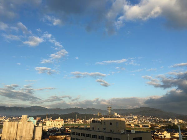 珍しく晴れた日の冬の空。朝だけど夕方みたいな陽の光が冬ですねー。