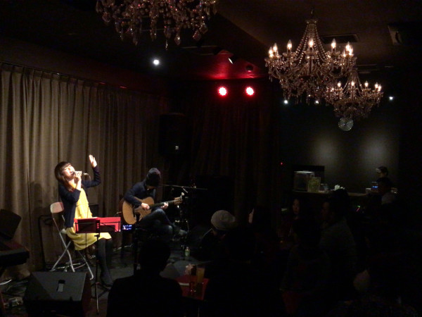シャンデリアが印象的で、お店の雰囲気も音もとてもいい感じ。ステージと客席が近いのと初めての場所ということで緊張マックスでしたが、お客さまとお店の方に暖かく迎えていただきました、ありがとうございます!