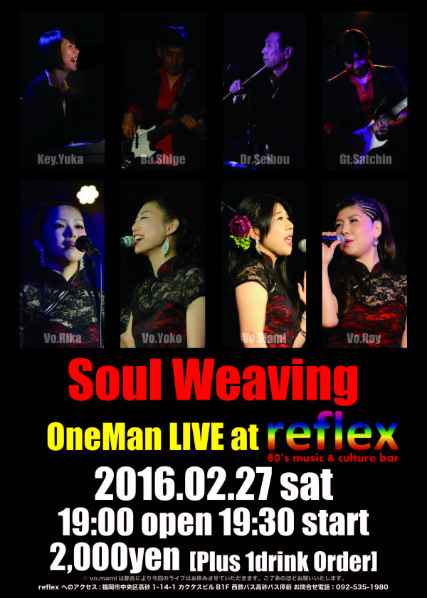 今回のライブがSoul Weaving 39th Liveということで、勝手にサンキューライブ(⇦おやじぎゃぐ)と題して、いつも遠く?!久留米まで足を運んでいただく福岡のみなさまに向けてSoul Weavingワンマンにてたっーーぷりお届けしたいと思います!(もちろん福岡在住以外の方もお待ちしておりますー、笑)