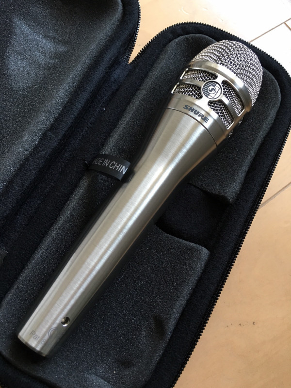 SHURE KSM8 です。私にしてはお高いマイクなので、結構悩んだのですが、使ってみると全然違います、びっくりしました!自分のイメージしている声がそのまま出ている感じで、ちょっと試してみたいというボーカルの方、声をかけてくださーい^ ^