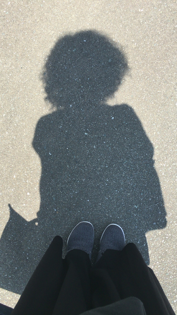 日曜日のライブの日に、出発前に自撮り。頭あらいっぱなしのぼさぼさで、大荷物を抱えているいつものスタイル。