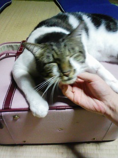 新チームの写真を取り忘れ、登場です。人間ぽい猫で、私のかばんが大好きになりました。ずっと乗っています。
