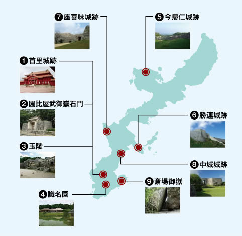 沖縄の世界遺産は5つのグスクと、その関連遺産の4つの遺物で成り立っていて、