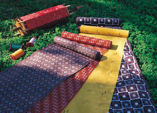 かすり織りは戦前まで沖縄各地でつくられていましたが、戦後は工房が集まる南風原を中心に織られるものを「琉球かすり」と呼ぶようになりました。