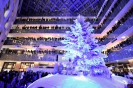 丸の内のJPタワー「KITTE」では、屋内日本最大級の高さを誇る本物のモミの木を使用したクリスマスツリーが、1Fアトリウムの吹き抜け空間に登場します。まるで雪が降り積もったかのように真っ白な装飾が施されたクリスマスツリーがライトアップされ、流れる音楽とともに行き交う人々を楽しませることでしょう。期間中は多彩なイベントの開催を予定しています。