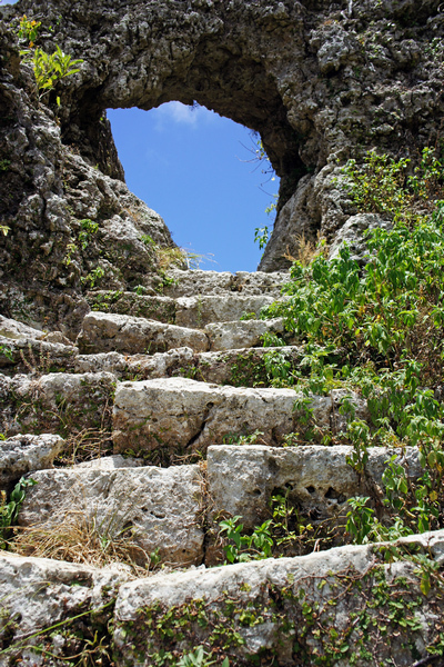仰ぎ見る天空に、ぽっかり空いている穴。これが「玉城城跡」の城門です。