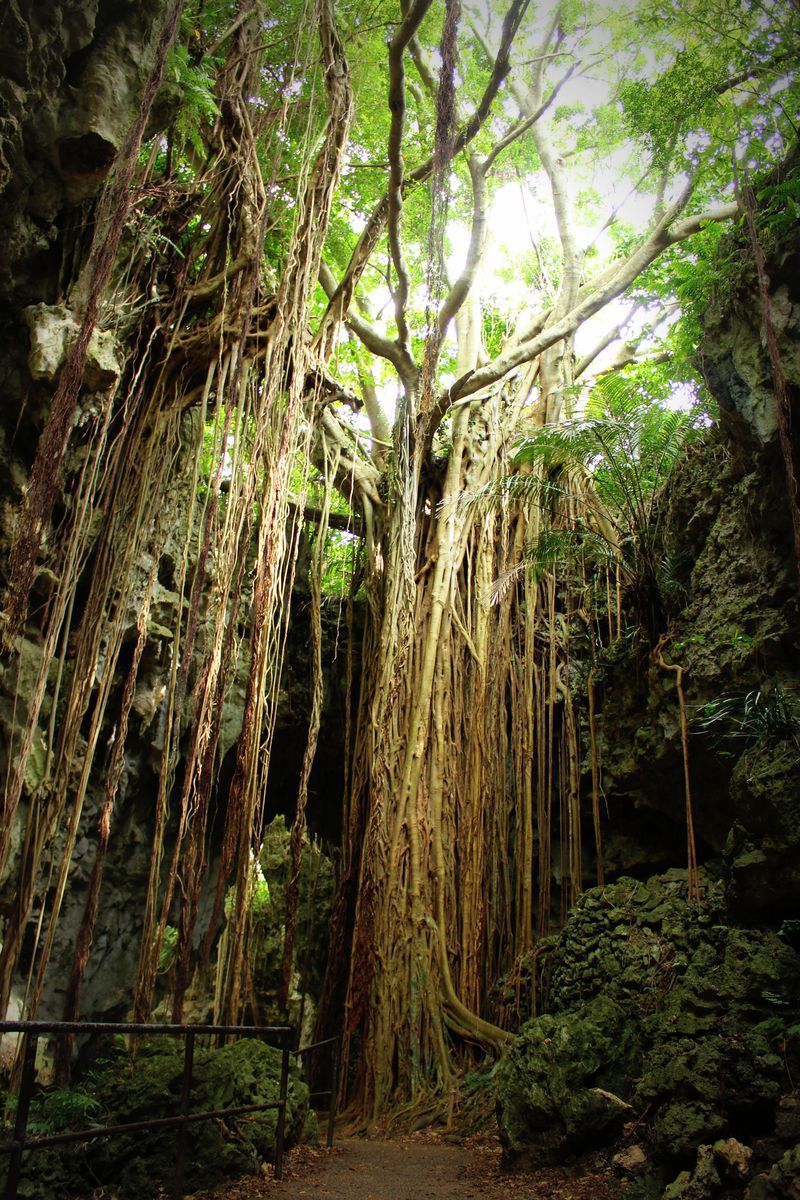 数十年前の鍾乳洞が崩落して出来た亜熱帯の森です。