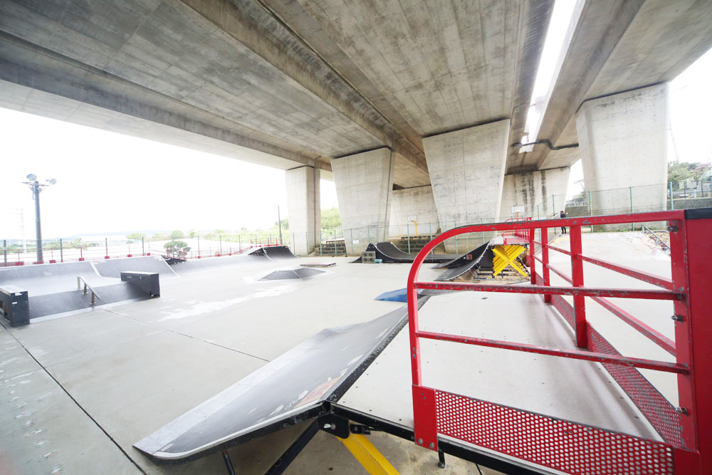 回廊ごとに、フットサル場、バスケットボール場、スケートボード場、