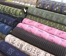 かつては木綿の織物と絹織物を生産してましたが、現在は絹を主に使用されています。