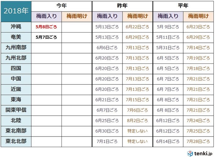 7日の奄美地方に続く全国2番目の梅雨入りで、