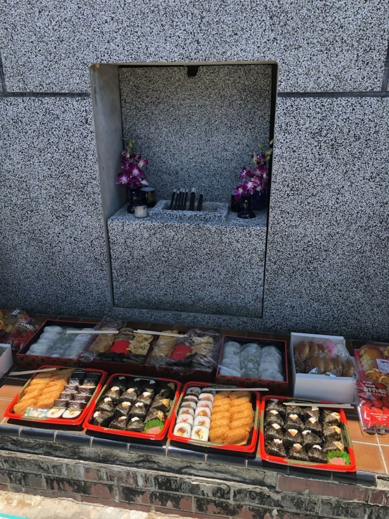 門中単位で先祖もお墓に出向き、親族そろって墓参りをし、その後お墓の前で
