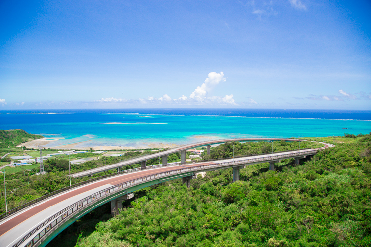 ニライ・カナイの2本からなる全長約1,2㎞、高さ約80mの橋。