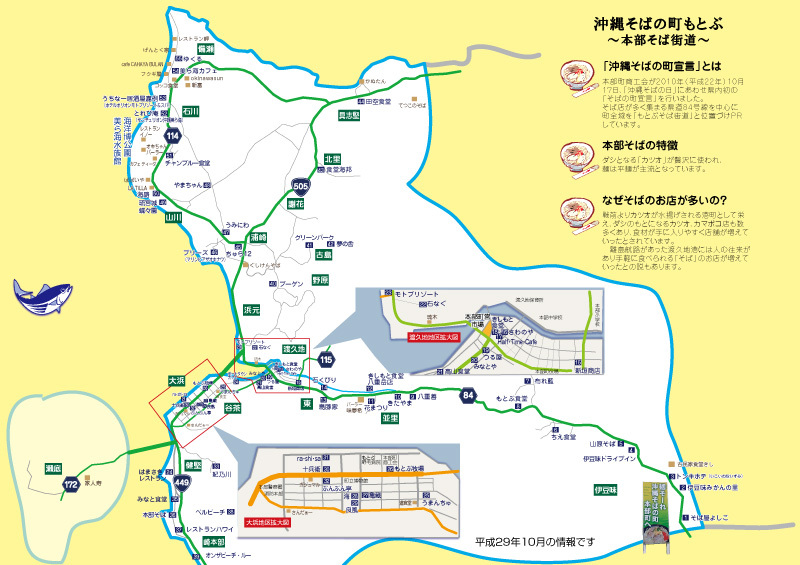 本部そば街道は、名護市から美ら海水族館まで続く県道84号線のこと。