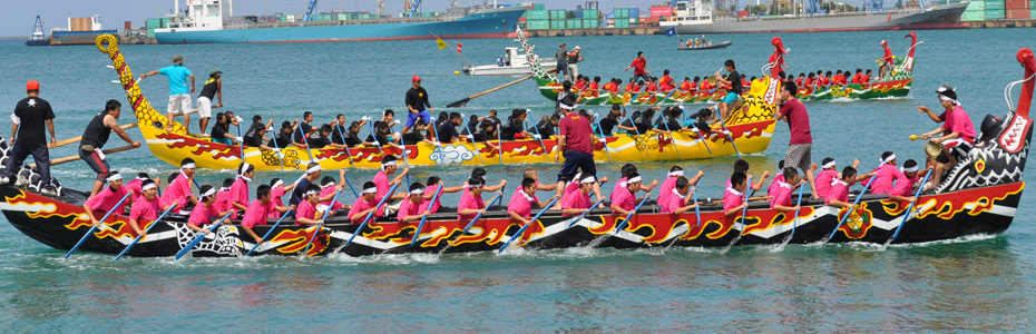 爬竜船(はりゅうせん)やサバニを漕ぎ競い合うことで