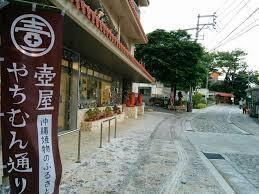 那覇市にある壺屋やちむん通りは、約400mの琉球石灰岩の