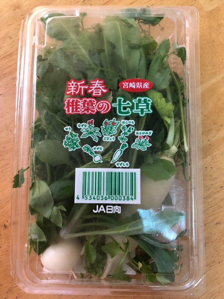 セリ、ナズナ、 ゴギョウ、ハコベラ、ホトケノザ、スズナ、スズシロ