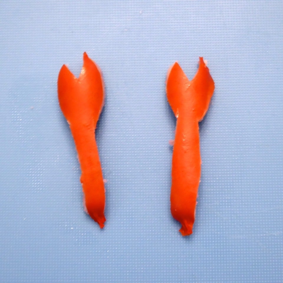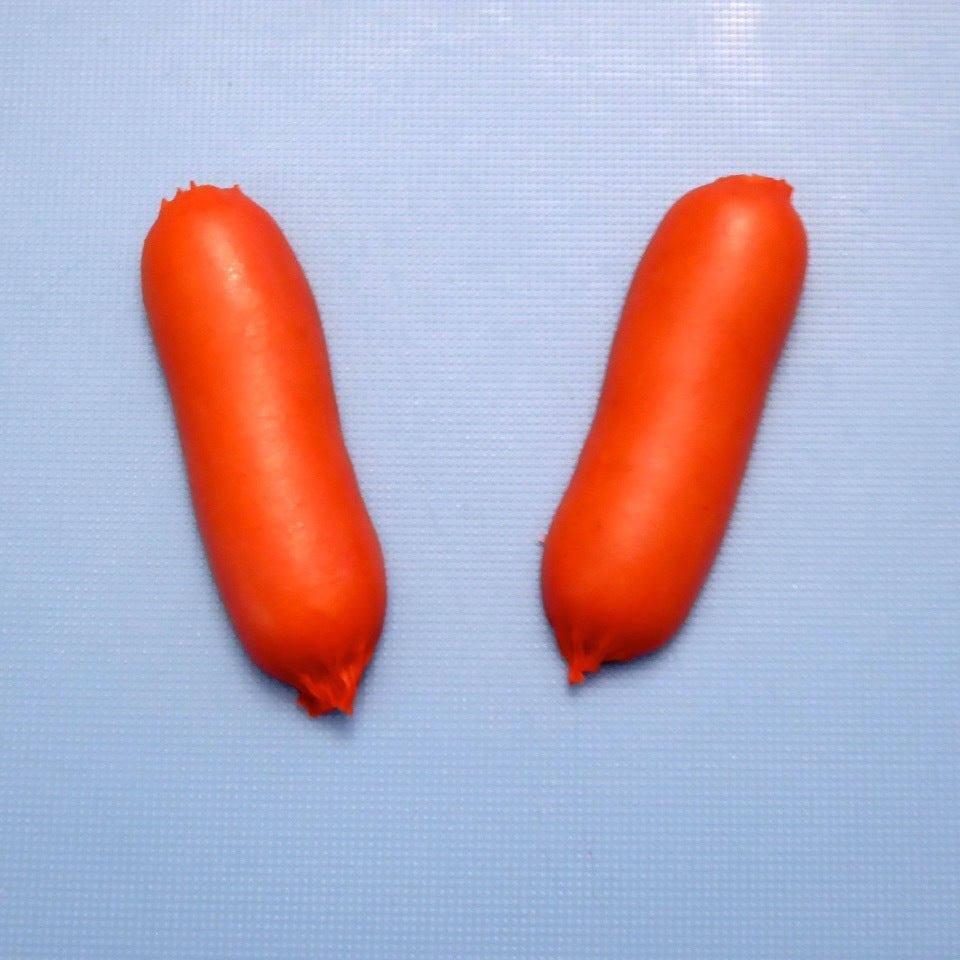 赤ウインナーは茹でて、冷めてから半分に切ります。