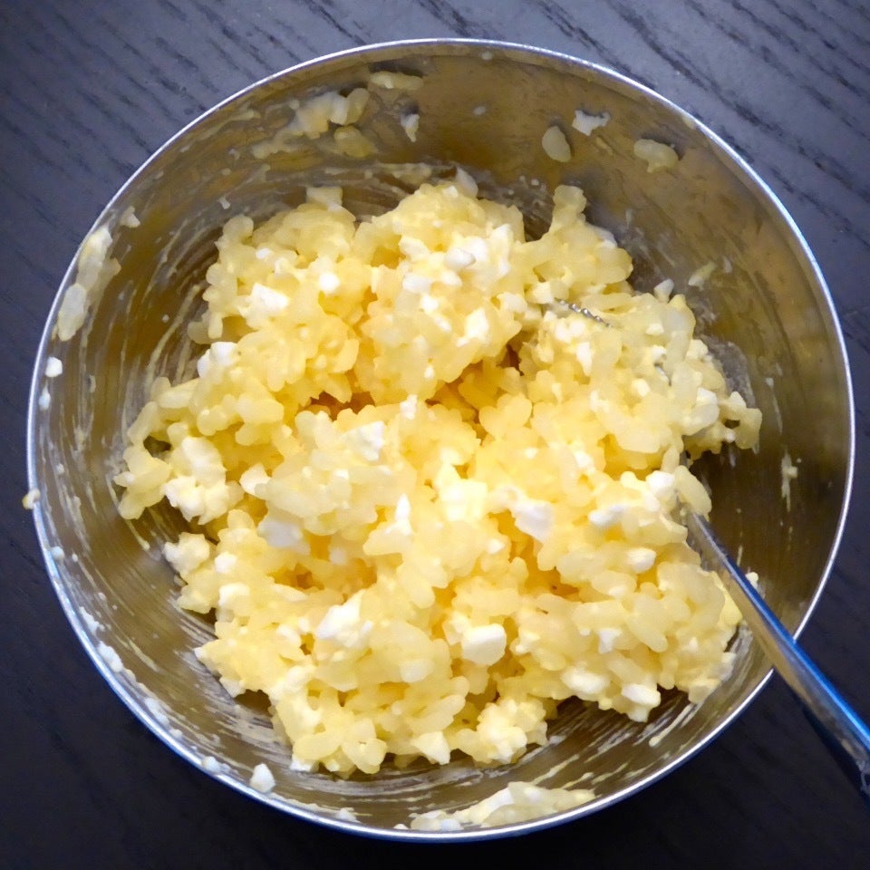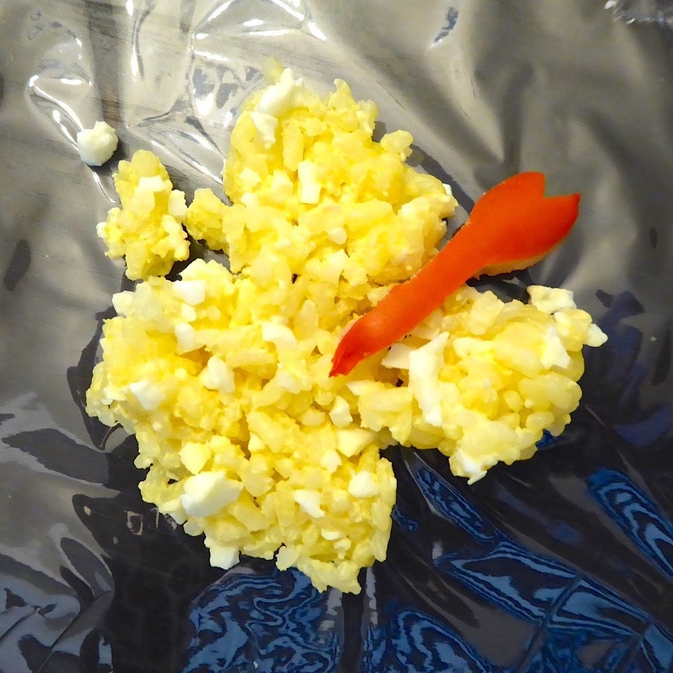 ご飯は潰したゆで卵を混ぜるのでいつもの半分の量にしてください。