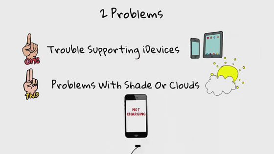 SELLSさんによると既存のソーラーチャージャーには「iOSデバイスに非対応」や「影に入ってから出た後の不具合」という2つの問題があるとのこと。