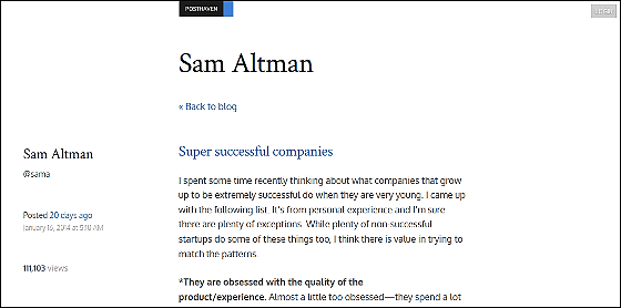 ベンチャーキャピタルのYコンビネータとパートナー関係にある起業家のサム・アルトマン氏は、数多くのスタートアップ企業と関わってきた個人的な経験から、「大成功した企業と創業者に見られる特徴」をリストアップしています。