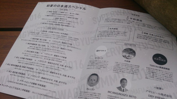 前回はスタッフの皆様が肉に合わせて配りにきたが、今回は自ら酒コーナーへ向かい酒を貰うスタイル。配られたおしながきをもとに、自ら楽しむスタイル、それがこの会のルール。