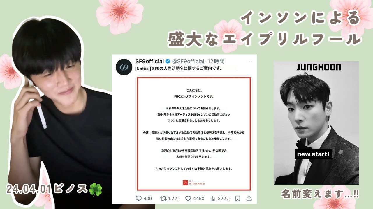 エイプリルフールのインソンがジョンフンに改名するという告知ですが、ヨンビンを巻き込んでいたのですね?