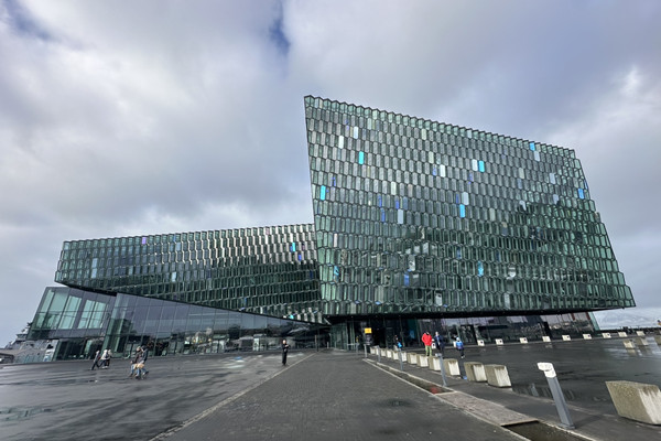 そして吹雪く町の中を散策。強風で体感温度が寒く視界も悪かったので、見学したのはハルバというレイキャビックの海岸沿いにある音楽ホールです。