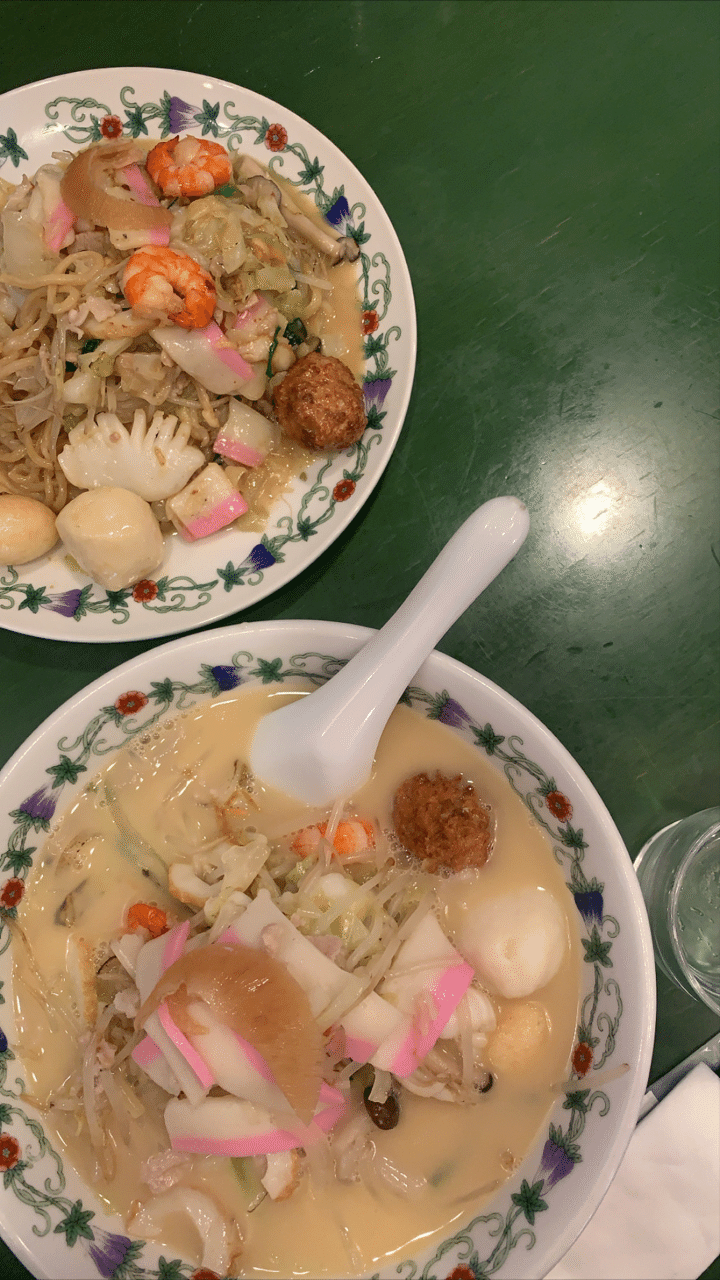江山楼のちゃんぽんと太麺皿うどん