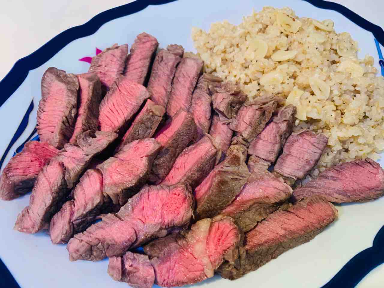 牛ロースステーキ・ガーリックライス