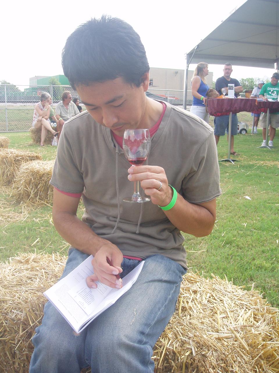 週末に隣町のGrapevine(グレイプバイン)で開催されたお祭りにいってきました。U夫婦と一緒にワインテイスティングに参加してきました。行く前はいっぱい試せるからラッキーという気持ちで参加したのですが、いざ始まるとけっこう真剣!ちゃんとマークシートが渡され、それぞれのカテゴリで一つだけ選んで記入にしていくという、なかなかのもの。いわゆる地元の人からの人気投票なんだけど、けっこう左右されるらしく各ワイナリーも真剣。一つづつ丁寧に説明をしてくれ、試飲。水でグラスをゆすいで、また試飲、と少しずつとはいえ、10杯目になると、もう何がなんだかわからない、という状態(笑)それでも、いくつか好きなワインを見つけたのでよかった!この町はな名前から連想されるように、ワイナリーが盛んな地域だそうで、リゾートと併設されていたり、イベントがあったりと、それぞれ趣向をこらしてやっているそう。今度はワイナリー巡りでもしてみるかな。。。